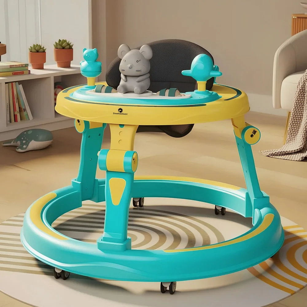 StaAndDaisy Best Infant Walker with Wheels, Baby Push Walker with Adjustable Heights, Musical Toy Tray – Green Yellow
