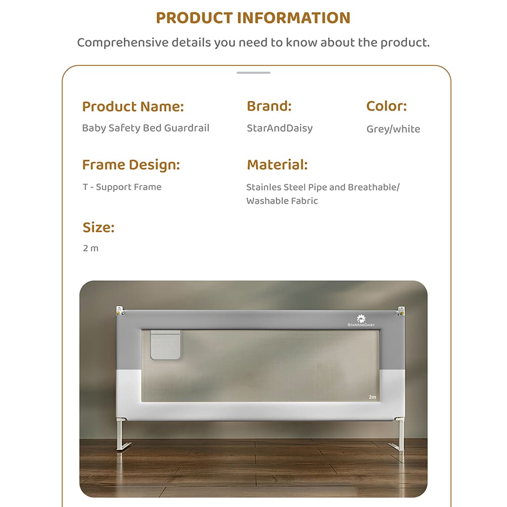 - Harmless Materials: Carefully crafted from non-toxic, child-safe materials, this guardrail ensures your baby’s safety and well-being. You can trust that every part is free from harmful chemicals, making it perfect for everyday use around your little one