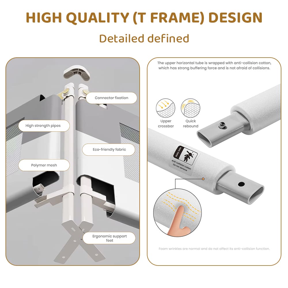 Installation is quick and straightforward, thanks to the T-supportive frame and secure locking mechanism. The soft yet sturdy fabric offers extra comfort for your baby while maintaining robust protection. Additionally, the rail is easy to clean, ensuring hygiene and convenience for busy parents.