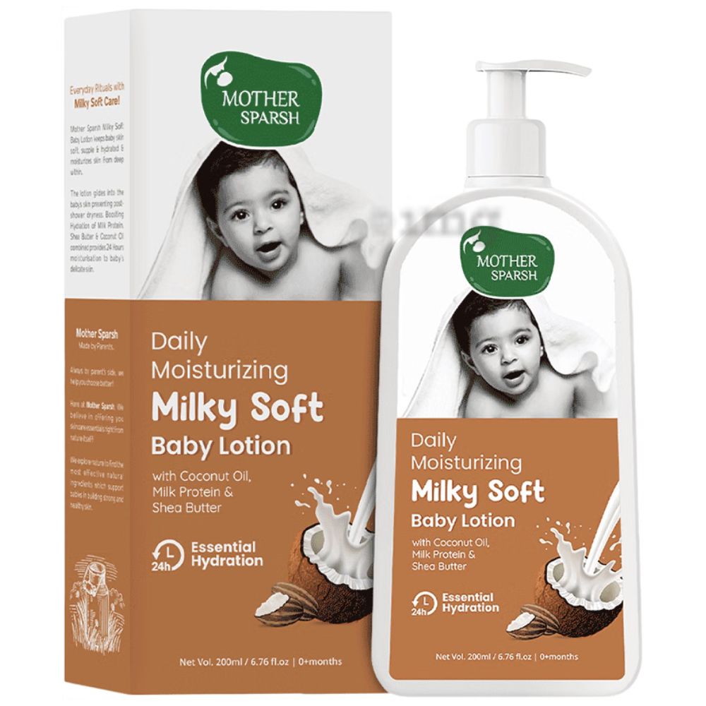 Mother Sparsh Daily Moisturizing Milky Soft Baby Lotion is specially formulated to nourish and hydrate your baby’s delicate skin. Infused with milk protein, coconut oil, shea butter, and jojoba oil, this lotion delivers 24-hour moisturization, leaving skin soft, supple, and healthy. Its pH-neutral, mild, and gentle formula glides easily onto the skin, locking in moisture and preventing post-shower dryness. Free from harsh chemicals, the lotion is suitable for everyday use, helping to strengthen the skin barrier and protect against dryness without clogging pores or leaving a greasy residue.