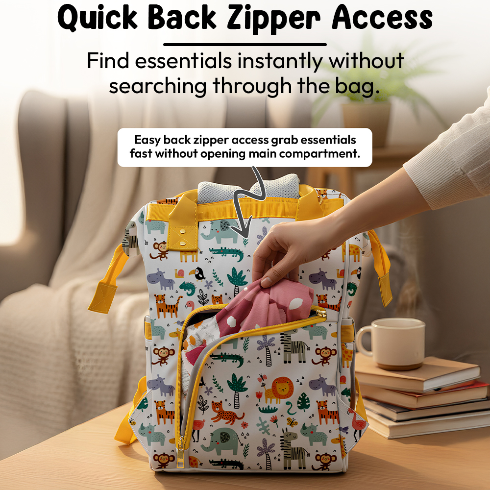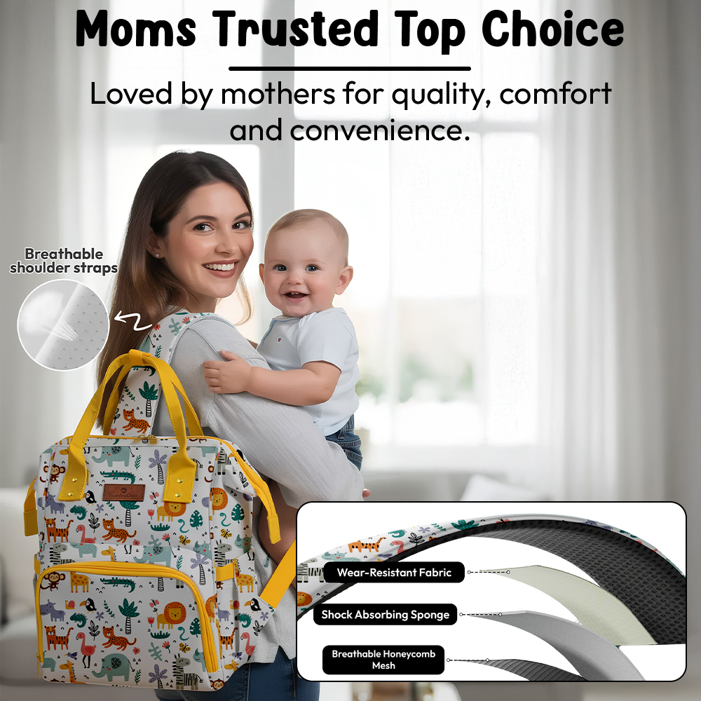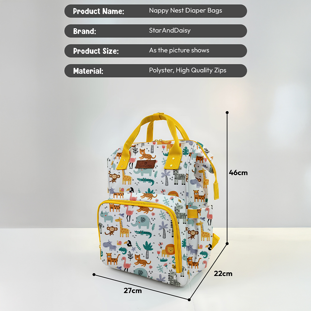 StarAndDaisy Spacious Diaper Bag for New Mommy, Diaper Backpack with Multiple Pockets, Water-Resistant Fabric, 3 Double Insulated Pockets – Giraffe Print